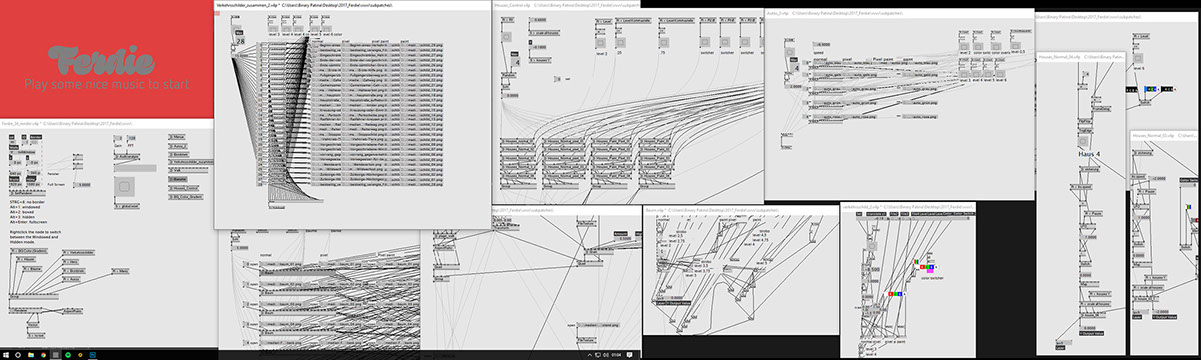 Die Einzelnen Elemente erscheinen audioreaktiv. Gespielte Musik wird mittels Fast Fourier-Transformation (FFT) in Echtzeit zerlegt und analysiert. Bestimmte Frequenzbereiche triggern unterschiedliche Elemente der Umgebung und diese erscheinen auf dem Weg: je dynamischer und schneller die Musik, desto dichter reihen sich beispielsweise die Bäume aneinander. Wann welcher Baum und welches Auto oder Haus auf Ferdies Weg erscheinen, wird beim Triggern zufällig bestimmt, mit der Vorgabe, das Triggern des selben Elementes nacheinander möglichst auszuschließen.